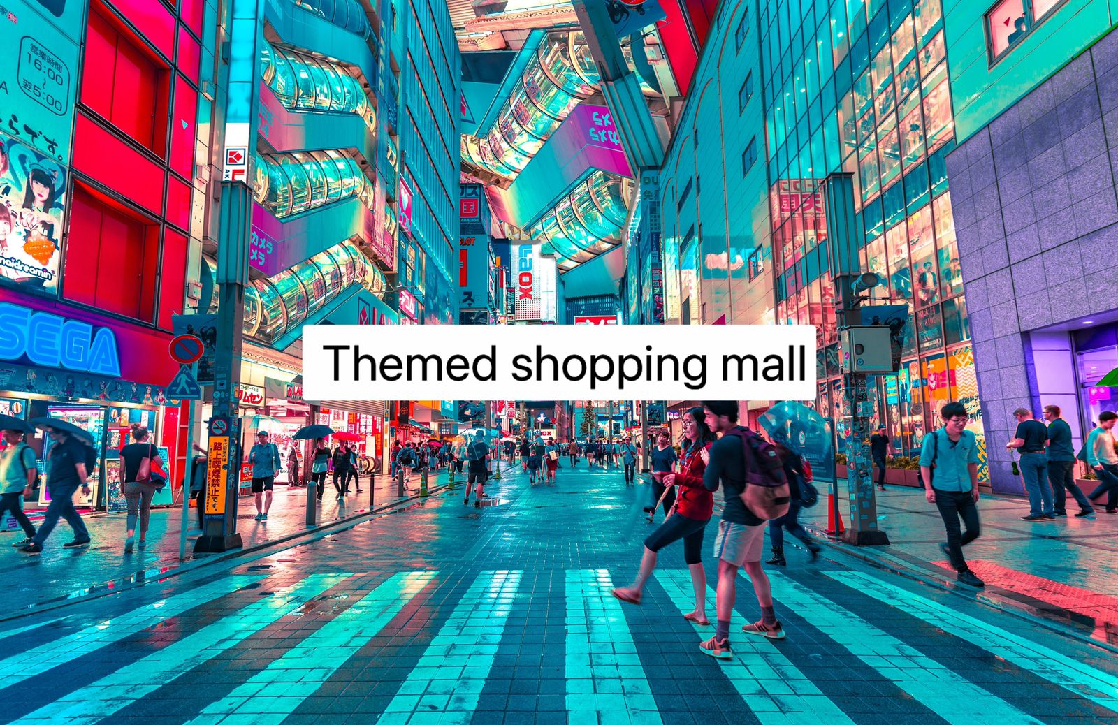 المباني تنقسم الي مولات تحاريه يصل عددها الي ١٠ مباني