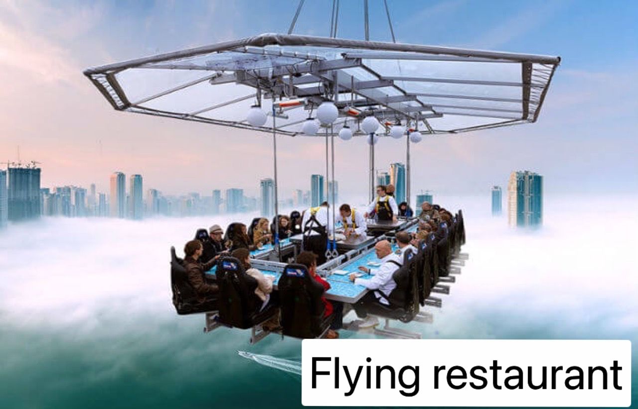 يوجد مطعم طائر علي الجهتين يعلو مبني